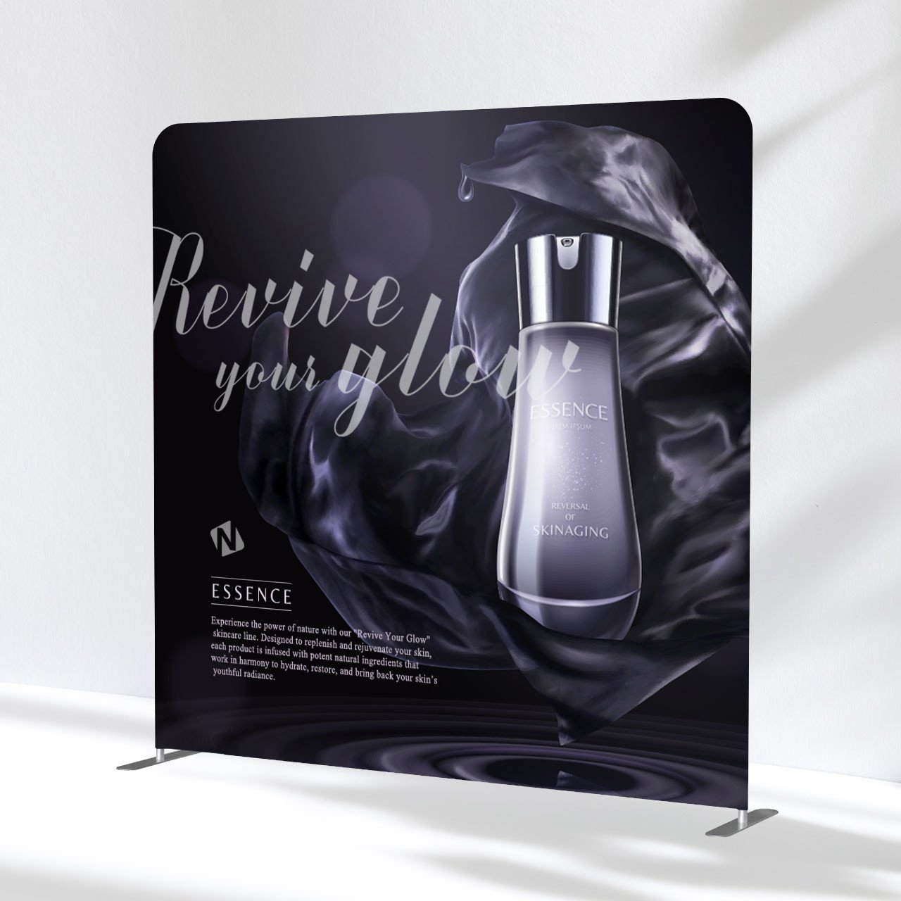 Our Tension Displays consist of a lightweight but durable aluminum hardware and a Fabric Dye-Sublimated Print. The hardware is inserted inside the print, much like a pillow into a pillowcase. The fabric print is stretched tight across the frame and zipped close.